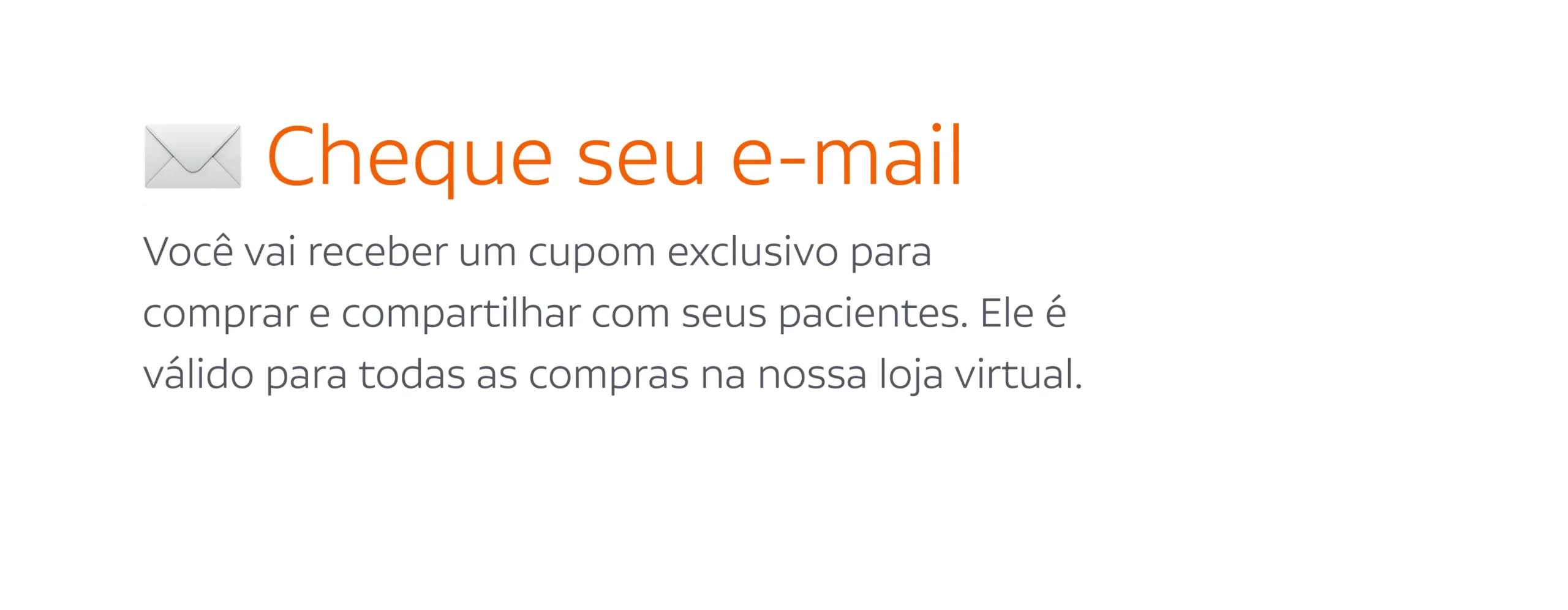 Você vai receber um cupom exclusivo para comprar e compartilhar com seus pacientes. Ele é válido para todas as compras na nossa loja virtual.